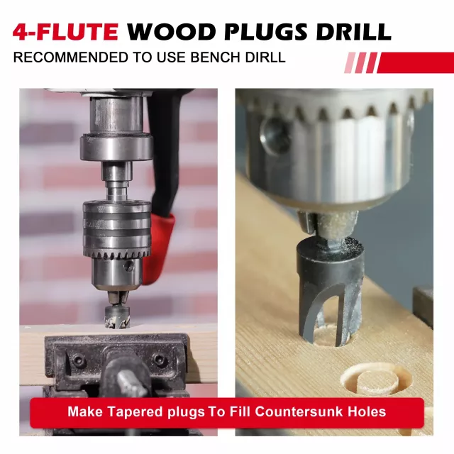 • 2 wood plug cutters in 3/8″ and 1/2″ for hiding screws seamlessly