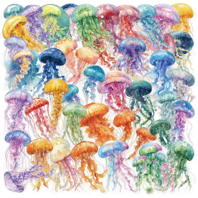 Unleash your creativity with these stunning Colorful Jellyfish PET Waterproof Stickers. Designed to add a touch of artistic flair to any project, these stickers are perfect for decorating tumblers, scrapbooking, or any DIY craft you have in mind. With 50 vibrant sheets to choose from, each featuring beautifully detailed jellyfish designs, your creations will come to life with vivid color and charm.