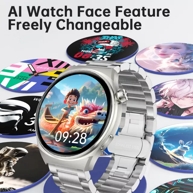 AI AMOLED Business Smartwatch with Always-On Display & Steel Band