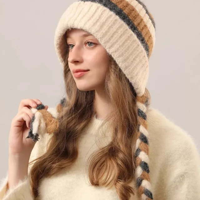 Cozy Color Block Knit Beanie with Ear Protection for Women