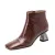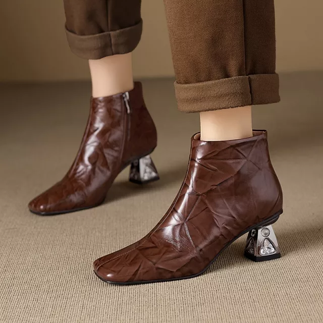 These ankle boots are a must-have for every fashion-forward woman this winter. With their striking strange heel design and square toe, they provide a sophisticated yet bold look that will turn heads wherever you go. The genuine leather material ensures that the boots remain a timeless addition to your wardrobe, while the sheepskin insole keeps your feet comfortable even during longer outings.