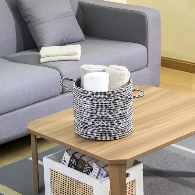 This versatile basket is best used indoors and fits beautifully in living rooms, bedrooms, nurseries, bathrooms, and entryways. Use it as a decorative storage organizer, a toy holder, a laundry helper, or even a stylish planter cover for artificial greenery. The neutral black-and-white tones appear soft gray from a distance, making it easy to match with any color scheme.
