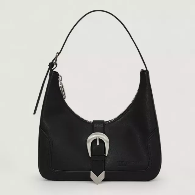 This handbag features a secure zip fastening to keep your belongings safe, along with a practical inside pocket for easy organization. Made from 100% polyurethane, it offers the look of leather with a lightweight, easy-care feel. The compact yet roomy design measures approximately 11.4 x 10.0 x 3.5 inches, giving you enough space for your essentials without feeling bulky.