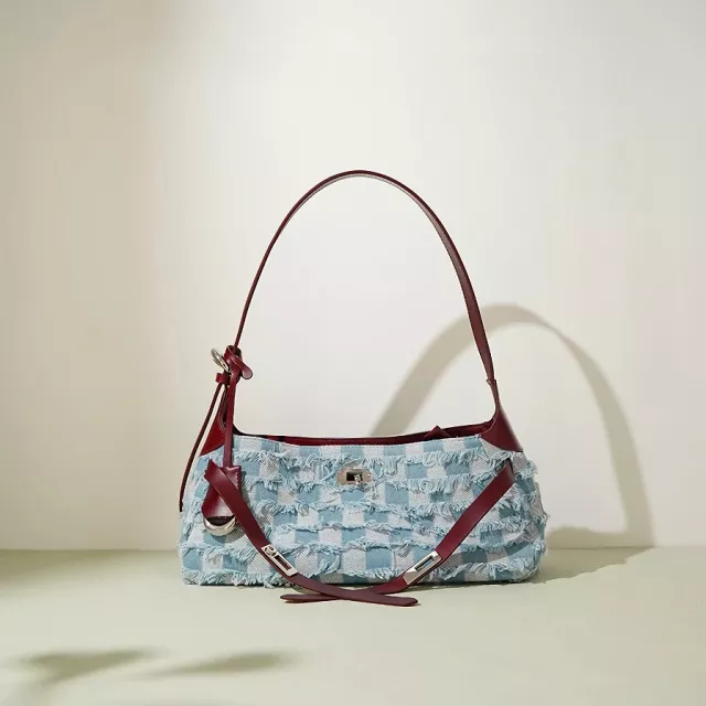Meet the handbag designed to keep up with your daily life while elevating your style. This large-capacity shoulder tote blends soft denim fabric with genuine leather details for a look that feels relaxed yet refined. The underarm-friendly shape sits comfortably on your shoulder, making it a perfect companion for busy mornings, workdays, and casual outings. It’s the kind of bag that looks effortlessly polished without trying too hard.
