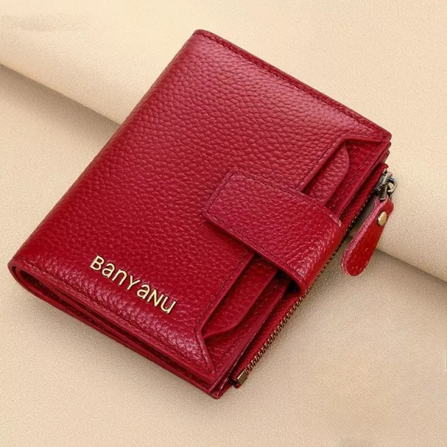 Luxury Women’s Genuine Leather Trifold Coin Purse Small Red Wallet