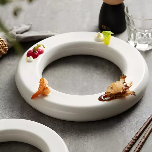What sets this plate apart is its understated design. The pure white color enhances the natural colors of sushi, seafood, meats, and vegetables, turning each dish into a visual centerpiece. The round shape creates balance on the table, while the solid pattern keeps the focus on presentation. Inspired by Japanese dining aesthetics, it brings harmony, simplicity, and style to every serving.