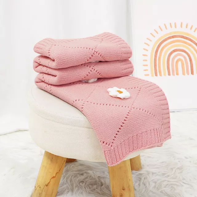 Soft Knitted Baby Blanket – 90x75CM Floral Stroller Swaddle Wrap for Boys & Girls