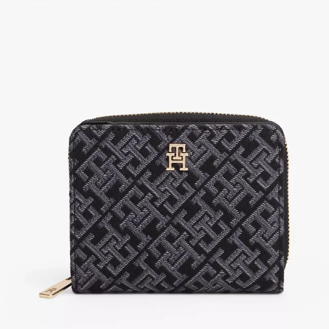 Tommy Hilfiger Women’s Black Printed Wallet with Zip and Button Fastening
