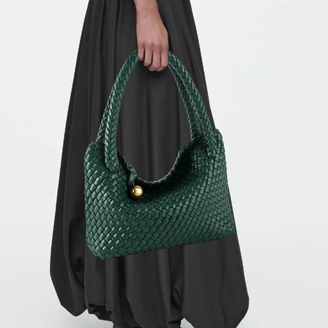 Elevate your everyday look with this beautifully designed woven shoulder tote that blends retro charm with modern fashion. Crafted from smooth PU leather with an eye-catching woven texture, this bag is designed for women who appreciate timeless style and practical elegance. The subtle golden bead decoration adds just the right amount of sophistication, making it easy to stand out without trying too hard.
