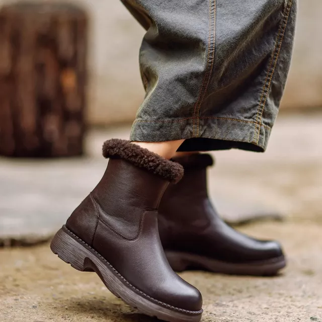What makes these boots special is the balance between natural materials and thoughtful design. The genuine leather upper feels soft yet durable, while the plush insole cushions your feet for long-lasting comfort. The rubber outsole adds traction and grip, helping you walk with confidence on slippery winter surfaces.
