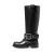 The perfect fusion of comfort and style, these boots are equipped with a 4.5 cm square heel, providing just the right amount of height while ensuring comfort throughout the day. With their sleek, knee-high design, they offer a flattering silhouette that’s perfect for pairing with skirts, dresses, or jeans. The round toe shape adds a touch of classic style, while the trendy buckle fashion element adds a rebellious twist. These boots are not just about looks; they’re also about durability and function.