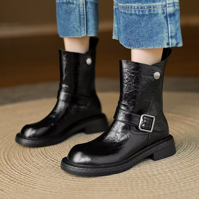 Crafted with high-quality materials, these ankle boots are designed to deliver both durability and comfort. The split leather upper adds a touch of sophistication while ensuring long-lasting wear. The genuine leather lining provides breathability, keeping your feet comfortable throughout the day, while the sheepskin insole adds a soft, cushioned feel. The square heel offers stability, and the buckle strap closure ensures a secure fit. Here’s a breakdown of the key features: