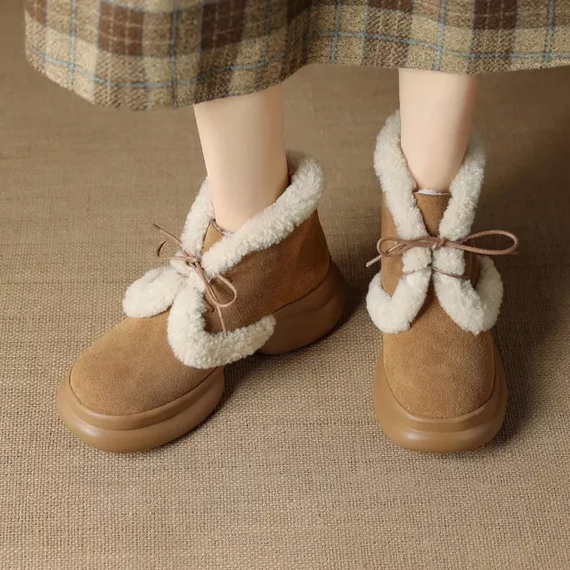 Designed with a round toe and 6cm (approx. 2.36 inches) platform heel, these boots combine elegance with practicality, giving you a subtle lift without sacrificing comfort. The lace-up design ensures a secure fit, while the rubber sole offers reliable traction on slippery surfaces. Available in classic colors like black, brown, and apricot, these boots easily match your wardrobe for both casual and semi-formal looks.
