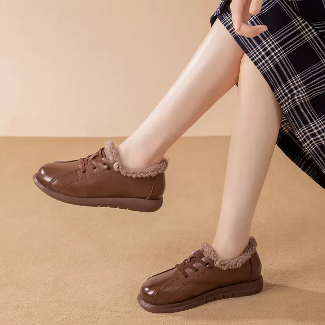 These flats feature a classic round toe that gives your toes enough room to move naturally. The turned-over edge detail adds a subtle fashion touch without being loud or trendy. A lace-up closure allows you to adjust the fit for maximum comfort, especially helpful if your feet tend to swell during colder days. The soft sole is designed to reduce foot fatigue, so you can stay on your feet longer without discomfort.