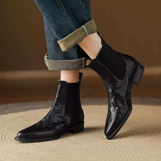 Upgrade your winter wardrobe with these genuine leather women’s boots, designed to combine fashion, comfort, and durability. Featuring a sleek pointed toe and a versatile chunky heel, these boots add a touch of elegance to any outfit, whether you’re heading to work, meeting friends, or enjoying a casual day out. Slip them on effortlessly with the convenient slip-on design, making them your go-to choice for busy mornings or last-minute outings.
